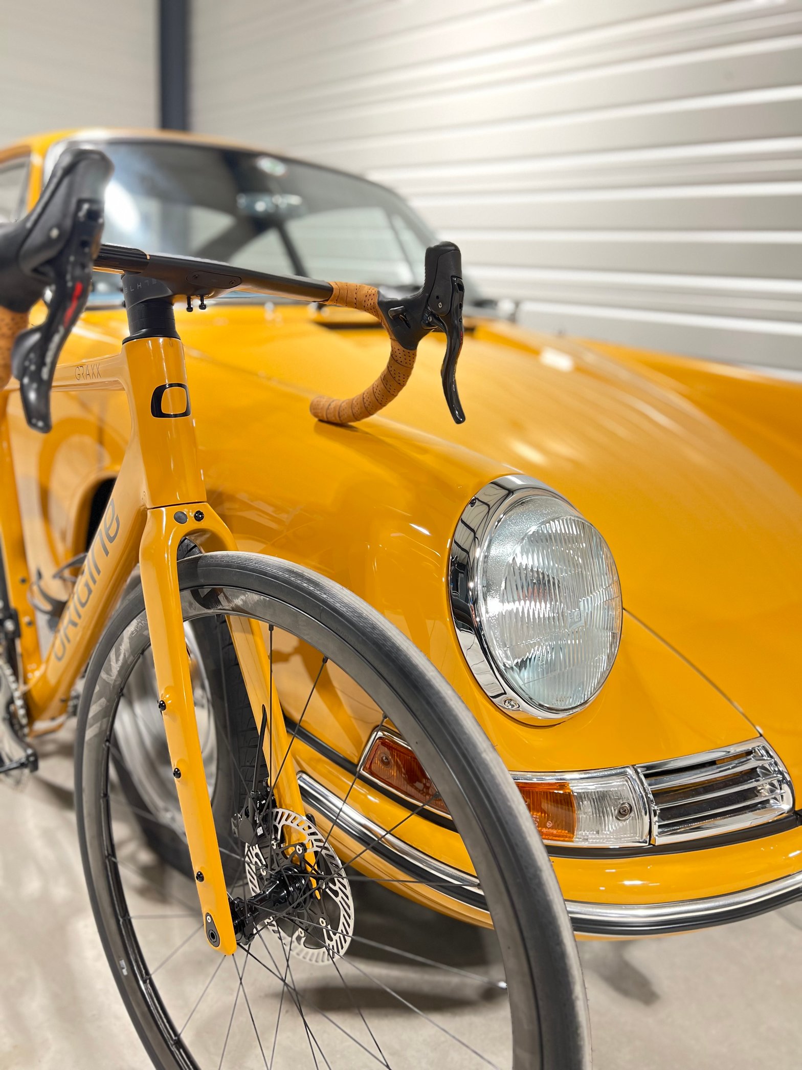 D’ailleurs, Stéphane a le goût pour les bonnes choses et je vous laisse admirer le soin qu’il a pris à matcher le coloris de son vélo à celui de sa Porsche 912 de collection.
