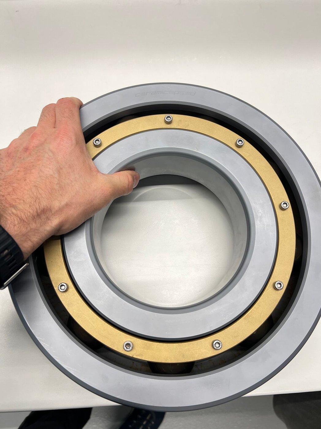 Chez Ceramicspeed, il y a aussi une division Industrie qui conçoit des roulements pour des utilisations spéciales. Ici, un roulement d’éolienne.